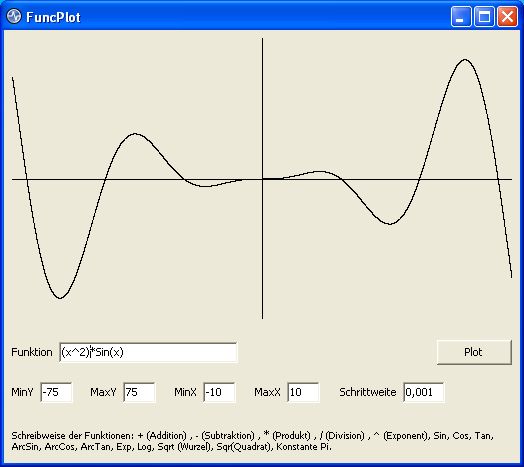 Inhalt: Das Programm ist ein einfacher Funktions-Plotter. Die Funktionen werden mit einem Parser