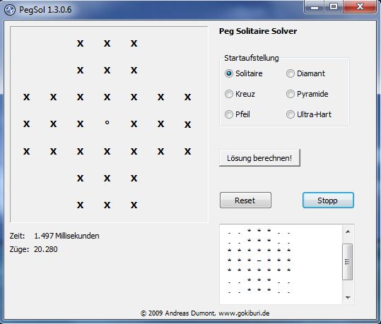 Inhalt: Das Programm PegSol findet die Lösung für verschiedene Solitaire-Varianten.
